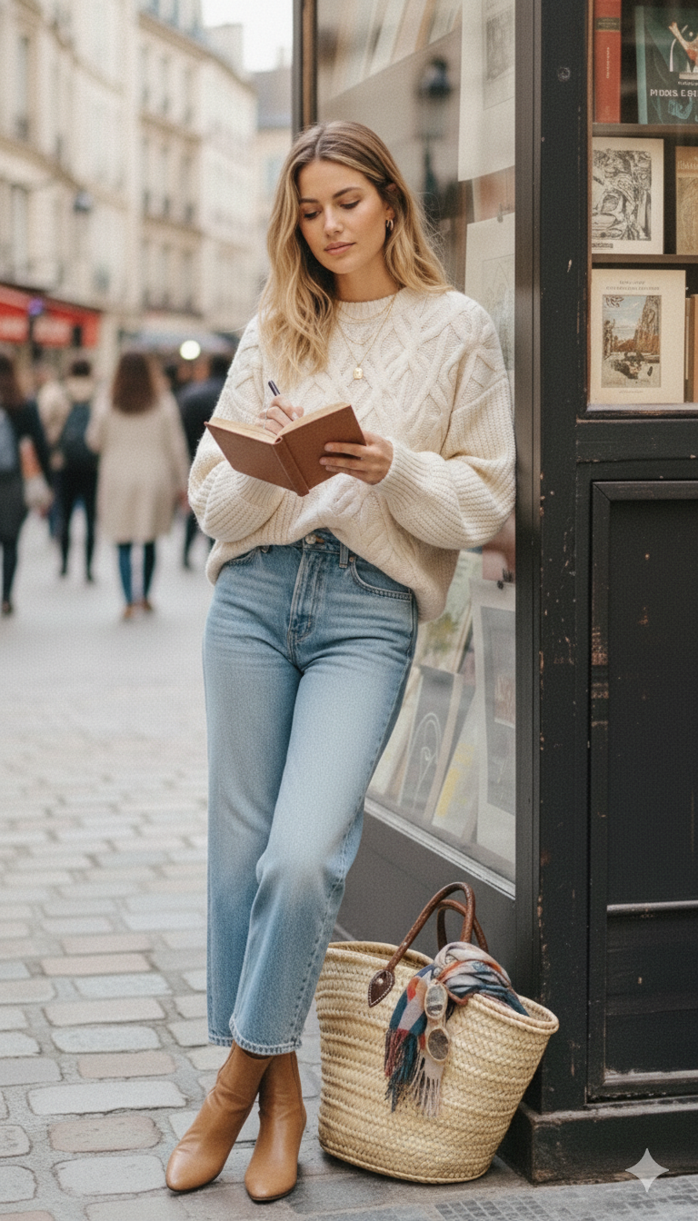 Casual Jacquard Zippered Denim Paneled Sweatshirt