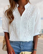SPECIFICATIONS Top Type: Blouses Style: Casual, Elegant Material: 100% Polyester Occasion: Daily, Vacation Neckline: V neck_V Sleeve Type: Regular sleeve Sleeve Length: Short Sleeve Fit Type: Regular Season: Spring, Summer Package Includes: 1 x Blouse SIZE TABLE Size Bust Length Raglan sleeves CM INCH CM INCH CM INCH S 95 37.40 6...