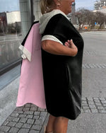 Casual Collared Color-Blocked Pullover Sweatshirt