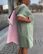SPECIFICATIONS Style: Elegant Material: Spandex, Polyester Dress Type: Shift dress Dress Length: Knee Length Neckline: V neck_V Pattern Type: Solid Color Sleeve Type: Slit Sleeves Sleeve Length: Half Sleeve Details: Patchwork Fit Type: Regular Season: Spring, Summer Occasion: Daily Package Includes: 1 x Dress SIZE TABLE Size ...