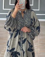 SPECIFICATIONS Style: Elegant Material: Cotton Blends Dress Type: A-Line Dress Length: Maxi Neckline: V neck_V Pattern Type: Leaves Sleeve Type: Puff Sleeve Sleeve Length: Short Sleeve Details: Shirred Fit Type: Regular Season: Spring, Summer Occasion: Daily, Vacation Package Includes: 1 x Dress SIZE TABLE Size US Bust Lengt...