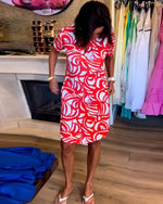 Short-sleeved Pocket Dress with Geometric Prints