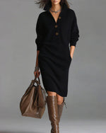 SPECIFICATIONS Style: Casual Material: Cotton Blends Dress Type: Shift dress Dress Length: Knee Length Neckline: Lapel Pattern Type: Solid Color Sleeve Type: Regular sleeve Sleeve Length: Long Sleeve Details: Pocket,Zipper Fit Type: Regular Season: Fall,Winter Occasion: Daily Package Includes: 1 x Dress SIZE TABLE Size Bust Length ...