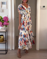 SPECIFICATIONS Style: Elegant Material: Cotton Blends Dress Type: A-Line Dress Length: Maxi Neckline: V neck_V Pattern Type: Print Sleeve Type: Regular sleeve Sleeve Length: Short Sleeve Fit Type: Regular Season: Spring,Summer Occasion: Daily Package Includes: 1 x Dress SIZE TABLE Size Bust Length CM INCH CM INCH S 97 38.19 130 51.18 ...