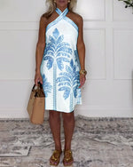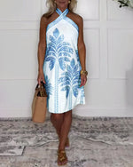 FEATURES Elegant V-neck design: The elegant V-neck design perfectly highlights the charming neck line, adding a touch of elegance and charm to the overall look. Exquisite prints: The unique and exquisite prints are like works of art embellishing the skirt, making you the focus wherever you go, showing your fashion taste. Chic knot details: T...