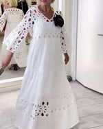 {"id":14706609848683,"title":"Elegant Solid Color Lace Hole Dress","handle":"elegant-solid-color-lace-hole-dress","description":"\u003ch4 data-mce-fragment=\"1\"\u003e\n\u003cspan data-mce-fragment=\"1\" style=\"color: #000000;\" data-mce-style=\"color: #000000;\"\u003eSPECIFICATIONS\u003c\/span\u003e\u003cbr data-mce-fragment=\"1\"\u003e\n\u003c\/h4\u003e\u003cul\u003e\n\u003cli data-mce-fragment=\"1\"\u003eStyle: Casual\u003c\/li\u003e\n\u003cli data-mce-fragment=\"1\"\u003eMaterial: Cotton Blends\u003c\/li\u003e\n\u003cli data-mce-fragment=\"1\"\u003eDress Type: A-Line\u003c\/li\u003e\n\u003cli data-mce-fragment=\"1\"\u003eDress Length: Maxi\u003c\/li\u003e\n\u003cli data-mce-fragment=\"1\"\u003eNeckline: V neck_V\u003c\/li\u003e\n\u003cli data-mce-fragment=\"1\"\u003ePattern Type: Solid Color\u003c\/li\u003e\n\u003cli data-mce-fragment=\"1\"\u003eSleeve Length: Nine Points Sleeve\u003c\/li\u003e\n\u003cli data-mce-fragment=\"1\"\u003eDetails: Patchwork\u003c\/li\u003e\n\u003cli data-mce-fragment=\"1\"\u003eFit Type: Regular\u003c\/li\u003e\n\u003cli data-mce-fragment=\"1\"\u003eSeason: Spring,Summer\u003c\/li\u003e\n\u003cli data-mce-fragment=\"1\"\u003eOccasion: Daily\u003c\/li\u003e\n\u003cli data-mce-fragment=\"1\"\u003ePackage Includes: 1 x Dress\u003c\/li\u003e\n\u003c\/ul\u003e\u003cbr\u003e\u003cul data-mce-fragment=\"1\"\u003e\u003c\/ul\u003e\u003ch4 data-mce-fragment=\"1\"\u003e\u003cspan data-mce-fragment=\"1\" style=\"color: #000000;\" data-mce-style=\"color: #000000;\"\u003eSIZE TABLE\u003c\/span\u003e\u003c\/h4\u003e\u003ctable style=\"width: 263pt;\" border=\"0\" width=\"349\" cellspacing=\"0\" cellpadding=\"0\" data-sheets-root=\"1\" data-sheets-baot=\"1\"\u003e\n\u003ccolgroup\u003e\n\u003ccol style=\"mso-width-source: userset; mso-width-alt: 2346; width: 55pt;\" width=\"73\"\u003e\n\u003ccol style=\"width: 52pt;\" span=\"4\" width=\"69\"\u003e\n\u003c\/colgroup\u003e\n\u003ctbody\u003e\n\u003ctr style=\"height: 14.0pt;\"\u003e\n\u003ctd class=\"xl64\" style=\"height: 28pt; width: 55pt; text-align: center;\" rowspan=\"2\" width=\"73\" height=\"38\"\u003e\n\u003cdiv style=\"max-height: 42px;\"\u003e\u003cstrong\u003eSize\u003c\/strong\u003e\u003c\/div\u003e\n\u003c\/td\u003e\n\u003ctd class=\"xl64\" style=\"width: 104pt; text-align: center;\" colspan=\"2\" width=\"138\"\u003e\u003cstrong\u003eBust\u003c\/strong\u003e\u003c\/td\u003e\n\u003ctd class=\"xl64\" style=\"width: 104pt; text-align: center;\" colspan=\"2\" width=\"138\"\u003e\u003cstrong\u003eLength\u003c\/strong\u003e\u003c\/td\u003e\n\u003c\/tr\u003e\n\u003ctr style=\"height: 14.0pt;\"\u003e\n\u003ctd style=\"height: 14pt; text-align: center;\" align=\"left\" height=\"19\"\u003e\u003cstrong\u003eCM\u003c\/strong\u003e\u003c\/td\u003e\n\u003ctd style=\"text-align: center;\" align=\"left\"\u003e\u003cstrong\u003eINCH\u003c\/strong\u003e\u003c\/td\u003e\n\u003ctd style=\"text-align: center;\" align=\"left\"\u003e\u003cstrong\u003eCM\u003c\/strong\u003e\u003c\/td\u003e\n\u003ctd style=\"text-align: center;\" align=\"left\"\u003e\u003cstrong\u003eINCH\u003c\/strong\u003e\u003c\/td\u003e\n\u003c\/tr\u003e\n\u003ctr style=\"height: 14.0pt;\"\u003e\n\u003ctd style=\"height: 14pt; text-align: center;\" align=\"left\" height=\"19\"\u003eS\u003c\/td\u003e\n\u003ctd style=\"text-align: center;\" align=\"right\"\u003e97\u003c\/td\u003e\n\u003ctd style=\"text-align: center;\" align=\"right\"\u003e38.19\u003c\/td\u003e\n\u003ctd style=\"text-align: center;\" align=\"right\"\u003e132\u003c\/td\u003e\n\u003ctd style=\"text-align: center;\" align=\"right\"\u003e51.97\u003c\/td\u003e\n\u003c\/tr\u003e\n\u003ctr style=\"height: 14.0pt;\"\u003e\n\u003ctd style=\"height: 14pt; text-align: center;\" align=\"left\" height=\"19\"\u003eM\u003c\/td\u003e\n\u003ctd style=\"text-align: center;\" align=\"right\"\u003e101\u003c\/td\u003e\n\u003ctd style=\"text-align: center;\" align=\"right\"\u003e39.76\u003c\/td\u003e\n\u003ctd style=\"text-align: center;\" align=\"right\"\u003e132\u003c\/td\u003e\n\u003ctd style=\"text-align: center;\" align=\"right\"\u003e52.36\u003c\/td\u003e\n\u003c\/tr\u003e\n\u003ctr style=\"height: 14.0pt;\"\u003e\n\u003ctd style=\"height: 14pt; text-align: center;\" align=\"left\" height=\"19\"\u003eL\u003c\/td\u003e\n\u003ctd style=\"text-align: center;\" align=\"right\"\u003e105\u003c\/td\u003e\n\u003ctd style=\"text-align: center;\" align=\"right\"\u003e41.34\u003c\/td\u003e\n\u003ctd style=\"text-align: center;\" align=\"right\"\u003e134\u003c\/td\u003e\n\u003ctd style=\"text-align: center;\" align=\"right\"\u003e52.76\u003c\/td\u003e\n\u003c\/tr\u003e\n\u003ctr style=\"height: 14.0pt;\"\u003e\n\u003ctd style=\"height: 14pt; text-align: center;\" align=\"left\" height=\"19\"\u003eXL\u003c\/td\u003e\n\u003ctd style=\"text-align: center;\" align=\"right\"\u003e111\u003c\/td\u003e\n\u003ctd style=\"text-align: center;\" align=\"right\"\u003e43.7\u003c\/td\u003e\n\u003ctd style=\"text-align: center;\" align=\"right\"\u003e135\u003c\/td\u003e\n\u003ctd style=\"text-align: center;\" align=\"right\"\u003e53.15\u003c\/td\u003e\n\u003c\/tr\u003e\n\u003ctr style=\"height: 14.0pt;\"\u003e\n\u003ctd style=\"height: 14pt; text-align: center;\" align=\"left\" height=\"19\"\u003e2XL\u003c\/td\u003e\n\u003ctd style=\"text-align: center;\" align=\"right\"\u003e117\u003c\/td\u003e\n\u003ctd style=\"text-align: center;\" align=\"right\"\u003e46.06\u003c\/td\u003e\n\u003ctd style=\"text-align: center;\" align=\"right\"\u003e136\u003c\/td\u003e\n\u003ctd style=\"text-align: center;\" align=\"right\"\u003e53.54\u003c\/td\u003e\n\u003c\/tr\u003e\n\u003ctr style=\"height: 14.0pt;\"\u003e\n\u003ctd style=\"height: 14pt; text-align: center;\" align=\"left\" height=\"19\"\u003e3XL\u003c\/td\u003e\n\u003ctd style=\"text-align: center;\" align=\"right\"\u003e123\u003c\/td\u003e\n\u003ctd style=\"text-align: center;\" align=\"right\"\u003e48.43\u003c\/td\u003e\n\u003ctd style=\"text-align: center;\" align=\"right\"\u003e137\u003c\/td\u003e