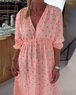 V-Neck Floral Print Pocket Half Sleeve Dress