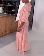 SPECIFICATIONS Style: Casual, Vacation Dress Type: A-Line Dress Length: Maxi Neckline: V neck_V Pattern Type: Print Sleeve Type: Lantern Sleeve Details: Drawstring Fit Type: Regular Material: 95% polyester, 5% spandex Season: Spring, Summer, Fall Occasion: Daily, Vacation Package Includes: 1 x Dress SIZE TABLE (cm) Size Bust Length Sho...
