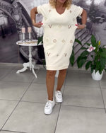 FEATURES Elegant V-neck design: The elegant V-neck design perfectly highlights the charming neck line, adding a touch of elegance and charm to the overall look. Exquisite prints: The unique and exquisite prints are like works of art embellishing the skirt, making you the focus wherever you go, showing your fashion taste. Chic knot details: T...