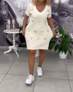 SPECIFICATIONS Style: Casual Material: Cotton Blends Dress Type: Shift dress Dress Length: Knee Length Neckline: Round Neck Pattern Type: Print Sleeve Type: Regular sleeve Sleeve Length: Short Sleeve Fit Type: Regular Season: Spring,Summer Occasion: Daily Package Includes: 1 x Dress SIZE TABLE Size Bust Length CM INCH CM INCH ...