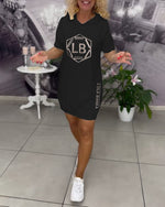 Hooded Lettering Printed Sports Dress