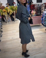 Round neck polka dot print midi dress