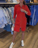 SPECIFICATIONS Style: Casual Material: Cotton Blends Dress Type: Shift dress Dress Length: Knee Length Neckline: Lapel Pattern Type: Solid Color Sleeve Type: Regular sleeve Sleeve Length: Long Sleeve Details: Pocket,Zipper Fit Type: Regular Season: Fall,Winter Occasion: Daily Package Includes: 1 x Dress SIZE TABLE Size Bust Length ...