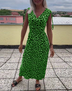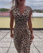 SPECIFICATIONS Style: Casual Material: Cotton Blends Dress Type: A-Line Dress Length: Maxi Neckline: V neck_V Pattern Type: Leopard Sleeve Length: Short Sleeve Details: Shirred Fit Type: Regular Season: Spring,Summer Occasion: Daily Package Includes: 1 x Dress SIZE TABLE Size Bust Length CM INCH CM INCH S 97 38.19 132 51.97 M 101...