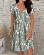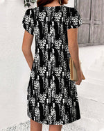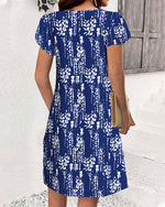 V-Neck Floral Print Pocket Half Sleeve Dress