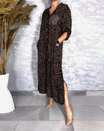 SPECIFICATIONS Style: Casual Material: Cotton Blends Dress Type: A-Line Dress Length: Maxi Neckline: V neck_V Pattern Type: Leopard Sleeve Length: Short Sleeve Details: Shirred Fit Type: Regular Season: Spring,Summer Occasion: Daily Package Includes: 1 x Dress SIZE TABLE Size Bust Length CM INCH CM INCH S 97 38.19 132 51.97 M 101...