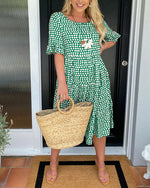 FEATURES Half Lantern sleeves: The half-length lantern sleeves add a playful and stylish touch, providing a distinctive and chic look. Convenient Pockets: Functional pockets blend seamlessly with the dress's design, offering practicality without compromising elegance. Fresh Prints: Adorned with refreshing prints, this dress exudes a fresh and s...