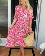 V-Neck Floral Print Pocket Half Sleeve Dress