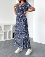 SPECIFICATIONS Style: Casual, Vacation, Chic Material: 5% Spandex, 95% Polyester Dress Type: A-Line Dress Length: Knee Length Neckline: V neck_V Pattern Type: Print Sleeve Type: Regular sleeve Sleeve Length: Short Sleeve Fit Type: Regular Season: Spring, Summer, Fall Occasion: Daily, Vacation Package Includes: 1 x Dress SIZE TABLE ...