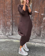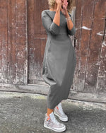 Simple solid color pocket long sleeve elegant dress