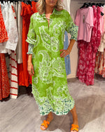 FEATURES Half Lantern sleeves: The half-length lantern sleeves add a playful and stylish touch, providing a distinctive and chic look. Convenient Pockets: Functional pockets blend seamlessly with the dress's design, offering practicality without compromising elegance. Fresh Prints: Adorned with refreshing prints, this dress exudes a fresh and s...