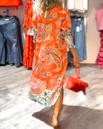 SPECIFICATIONS Style: Casual Material: Cotton Blends Dress Type: Shift dress Dress Length: Knee Length Neckline: V neck_V Pattern Type: Floral,Print Sleeve Type: Regular sleeve Sleeve Length: 3/4 Sleeve Fit Type: Regular Season: Spring,Summer Occasion: Daily Package Includes: 1 x Dress SIZE TABLE Size Bust Length CM INCH CM INCH ...