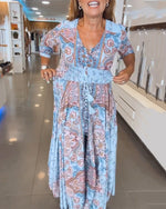SPECIFICATIONS Style: Elegant Material: Cotton Blends Dress Type: A-Line Dress Length: Maxi Neckline: V neck_V Pattern Type: Print Sleeve Type: Regular sleeve Sleeve Length: Short Sleeve Fit Type: Regular Season: Spring,Summer Occasion: Daily Package Includes: 1 x Dress SIZE TABLE Size Bust Length CM INCH CM INCH S 97 38.19 130 51.18 ...