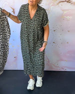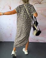 SPECIFICATIONS Style: Casual Material: Cotton Blends Dress Type: A-Line Dress Length: Maxi Neckline: V neck_V Pattern Type: Leopard Sleeve Length: Short Sleeve Details: Shirred Fit Type: Regular Season: Spring,Summer Occasion: Daily Package Includes: 1 x Dress SIZE TABLE Size Bust Length CM INCH CM INCH S 97 38.19 132 51.97 M 101...