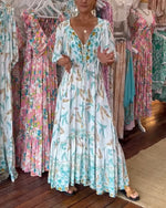 SPECIFICATIONS Style: Elegant Material: Cotton Blends Dress Type: A-Line Dress Length: Maxi Neckline: V neck_V Pattern Type: Print Sleeve Type: Regular sleeve Sleeve Length: Short Sleeve Fit Type: Regular Season: Spring,Summer Occasion: Daily Package Includes: 1 x Dress SIZE TABLE Size Bust Length CM INCH CM INCH S 97 38.19 130 51.18 ...