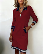 SPECIFICATIONS Style: Casual Material: Cotton Blends Dress Type: Shift dress Dress Length: Knee Length Neckline: V neck_V Pattern Type: Striped,Solid Color Sleeve Type: Regular sleeve Sleeve Length: Short Sleeve Details: Zipper Fit Type: Regular Season: Spring,Summer Occasion: Daily Package Includes: 1 x Dress SIZE TABLE Size Bust Le...