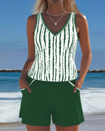 Casual Pocket V-Neck Printed Two-Piece Swimsuit
