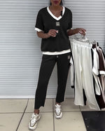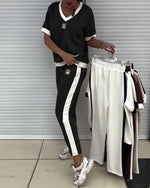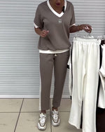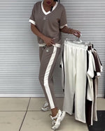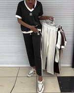 Casual V-Neck Contrast Color Sports Suit