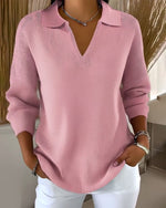 Women'S Long-Sleeved V-Neck Ribbed Sweater