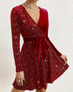 SPECIFICATIONS Style: Casual Material: Cotton Blends Dress Type: Wrap Dress Length: Above-knee Neckline: V neck_V Pattern Type: Solid Color Sleeve Type: Puff Sleeve Sleeve Length: Long Sleeve Details: Patchwork Fit Type: Regular Season: Spring,Fall Occasion: Daily,Party Package Includes: 1 x Dress SIZE TABLE Size Bust Length CM INCH CM ...