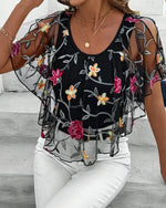 Embroidered Mesh Heavy Duty Blouse