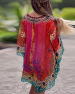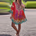 SPECIFICATIONS Style: Casual Material: Cotton Blends Dress Type: Shift dress Dress Length: Maxi Neckline: V neck_V Pattern Type: Print Sleeve Length: 3/4 Sleeve Details: Pocket,Shirred Fit Type: Regular Season: Spring,Fall,Winter Occasion: Daily Package Includes: 1 x Dress SIZE TABLE Size Bust Length CM INCH CM INCH S 97 38.19 132 ...