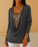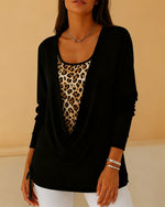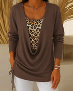 Fake Two-Piece Lace-Up Leopard Print T-Shirt