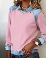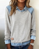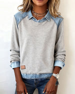 Leopard Print Denim Patchwork Sweatshirt