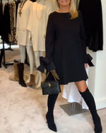 SPECIFICATIONS Style: Casual Material: Polyester Dress Type: Shift dress Neckline: Round Neck Pattern Type: Solid Color Sleeve Type: Regular sleeve Sleeve Length: Long Sleeve Details: Slit Fit Type: Regular Season: Fall,Winter Occasion: Daily Package Includes: 1 x Dress SIZE TABLE Size Bust Length CM INCH CM INCH S 97 37.4 120 47...
