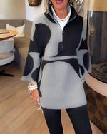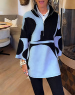 Casual Collared Color-Blocked Pullover Sweatshirt
