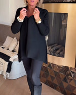 Casual V-Neck Solid Color Pullover