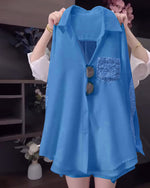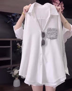 Lapel Sequin Long-Sleeved Shirt