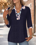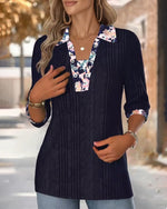Lapel Three-Quarter Sleeve Contrast Color Blouse