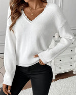 SPECIFICATIONS Category: Pullovers Style: Casual Material: Acrylic,Polyester Neckline: Round Neck Pattern Type: Solid color Sleeve Type: Regular sleeve Sleeve Length: Long Sleeve Details: Ruffle,Lace Fit Type: Regular Occasion: Daily Season: Fall,Winter Package Includes: 1 x Pullover SIZE TABLE Size Bust Length CM INCH CM INCH S 9...