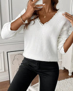 Women'S Long-Sleeved V-Neck Ribbed Sweater