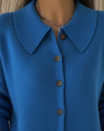 SPECIFICATIONS Style: Casual Material: Acrylic,Spandex,Polyester Dress Type: A-Line Dress Length: Knee Length Neckline: Lapel Pattern Type: Solid Color Sleeve Type: Regular sleeve Sleeve Length: Long Sleeve Details: Buttons Fit Type: Regular Season: Fall,Winter Occasion: Daily Package Includes: 1 x Dress SIZE TABLE Size Bust Length CM...