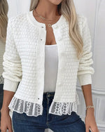 Long-Sleeved Lace-Paneled Sweater Coat