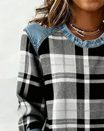 Casual Jacquard Zippered Denim Paneled Sweatshirt