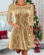 Sequined Velvet Paneled Dress