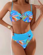 Sexy Printed Bra Contrast Color Two-Piece Swimsuit